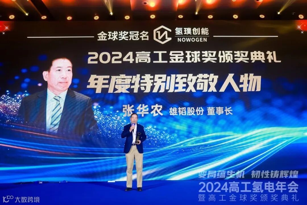凭借在氢能领域中的标杆实力,雄韬股份一举斩获“2024年度贡献”殊荣,董事长张华农更是荣获“2024年度特别致敬人物”,成为本次典礼唯一一位获得该项荣誉的企业家代表。这不仅是对雄韬股份综合实力等方面的高度认可,也是对公司在氢能行业领先地位的充分肯定,彰显雄韬股份在推动行业发展方面的重要贡献和影响力。