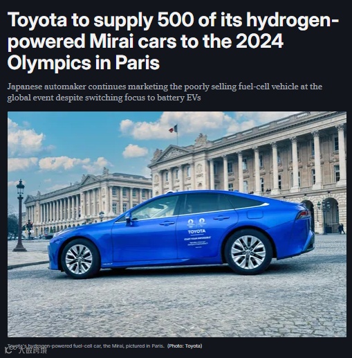 除了这些,氢能也加入了其减碳计划。新部署500辆Mirai、10辆氢能客车,与巴黎现有的1000余辆氢燃料电池出租车车队一起为赛事提供服务。