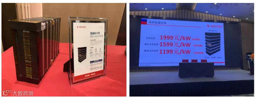 此次发布会重点发布了深圳氢瑞A1代燃料电池电堆,采用石墨双极板,额定功率42-84kW,体积功率密度3.5kW/L。所采取的价格策略为:一次性订购200台起,1999元/kW;一次性订购2000台起,1599元/kW;一次性订购10000台起,1199元/kW。此外,雄韬氢瑞还与金华氢途科技有限公司签订了战略协议,共同推进燃料电池关键核心技术研发及产业化,并拟定将采购雄韬电堆1000台。