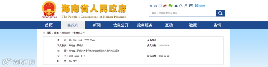 8月22日,海南省人民政府印发了《海南省碳达峰实施方案》(以下简称“《方案》”)。