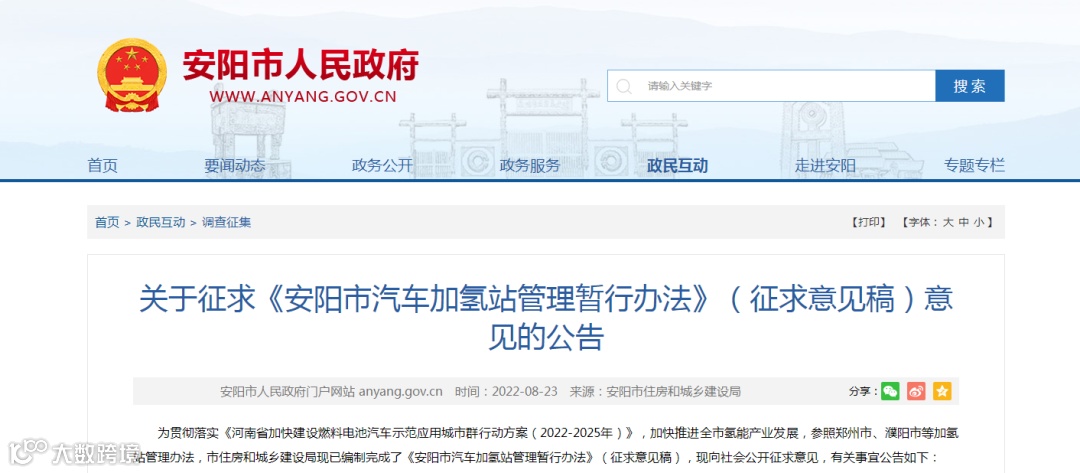 【政策】《安阳市汽车加氢站管理暂行办法》(征求意见稿)发布