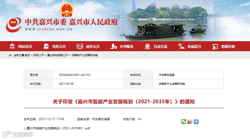 近日,浙江嘉兴市印发了《嘉兴市氢能产业发展规划(2021-2035年)》。