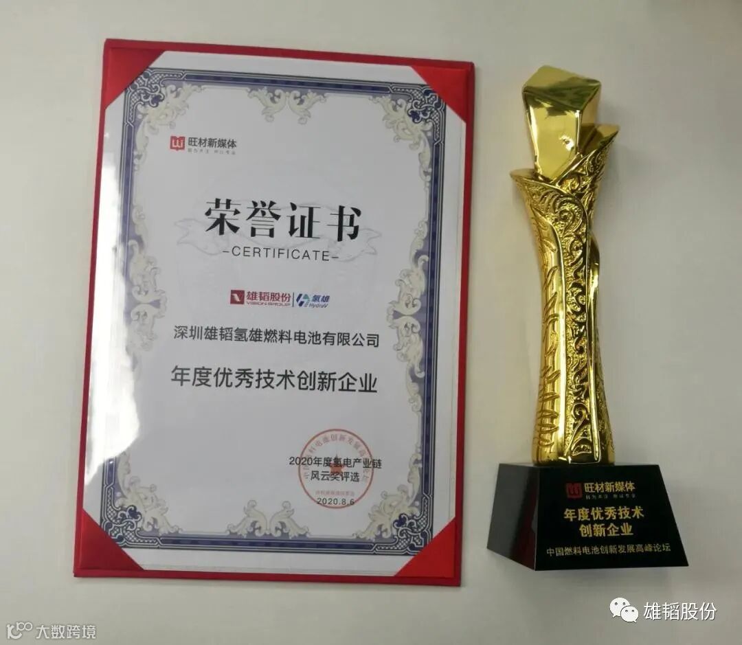 雄韬氢雄荣获旺财燃料电池“年度优秀技术创新企业”奖