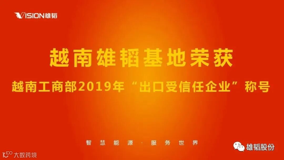 雄韬越南基地荣获越南国家工商部2019年“出口受信任企业”称号