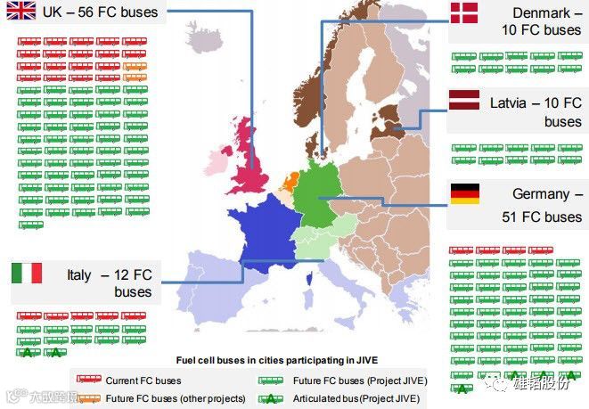 JIVE项目通过在欧盟英国、德国、丹麦、意大利和拉脱维亚五成员国的大规模示范运行,将推动燃料电池巴士的商业化进程。