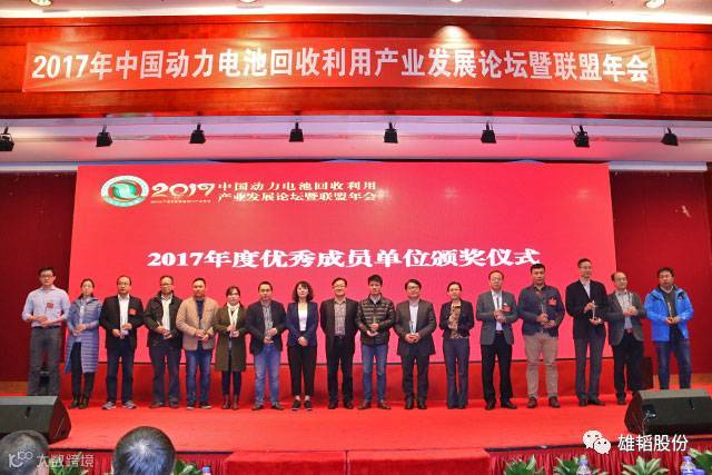 大会也评选出2017年度优秀成员单位,雄韬股份由于其在动力锂电池梯次利用上的卓越贡献与不懈努力,荣获“优秀成员单位”奖项。