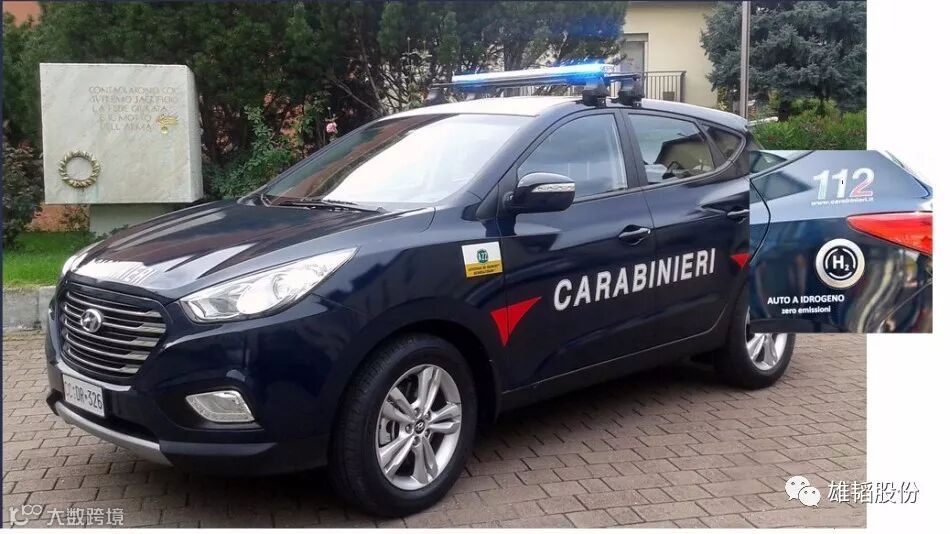 据外国媒体报道:意大利特伦蒂诺-上阿迪杰大区宪兵队日前接受并投放了意大利警方第一辆燃料电池警车,该车由现代ix35燃料电池版改装而成。该车将一直在特伦蒂诺-上阿迪杰大区服役直到2018年8月31日。
