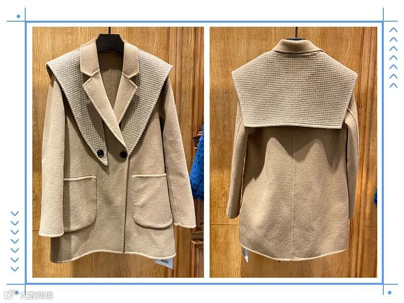 西装领,个性披肩剪裁,都超级显气质,中长宽松版型,上身超级减龄,而且显高显瘦,搭配骑士过膝靴,绝绝子!