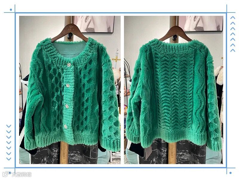 这是一套颗粒羊羔毛剪花短款大衣,厚实绵密,手感细腻柔软,毛毛饱满,很舒服!