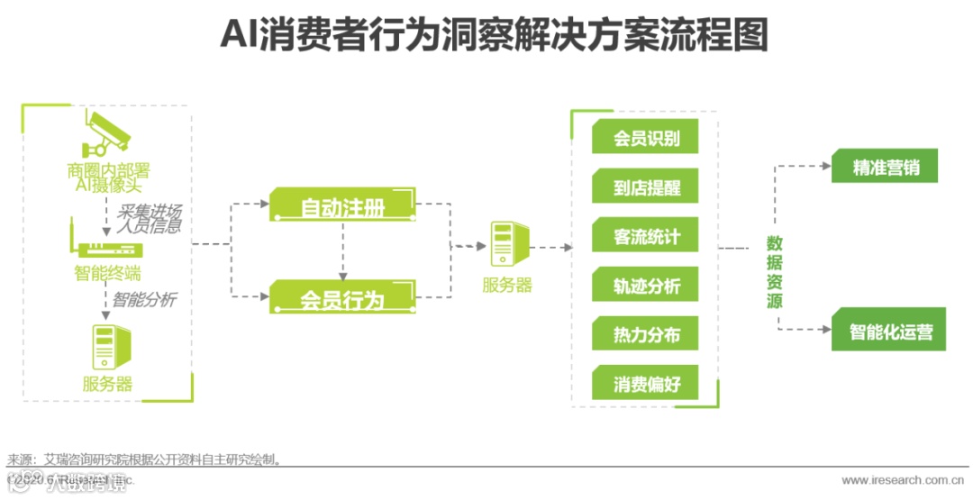 人脸识别和行人重识别(Re-ID)技术的发展改变了这一局面,以智能摄像头为信息采集入口,通过采集消费者人脸、面部表情、衣着、体态、发型等信息,实现在线下零售场景对消费者的全流程感知。Re-ID技术可补充人脸识别技术只依赖人脸信息的缺陷,在非配合条件下完成对个体行进轨迹及动态的追踪。此外通过将人脸信息、购物轨迹等与会员管理系统、消费记录数据进行结构化整合,可实现对线下渠道消费者营销推广及对业务经营的精细化管理。