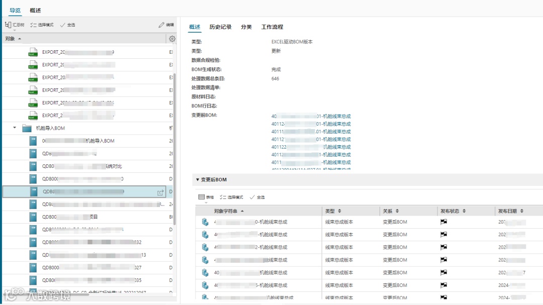 在对历史数据的处理上,IPS智参科技通过多维度策略对曼德电气历史数据进行了深度梳理和优化,包括文档的重构、原材料属性的集中整合,线束总成及其BOM的系统迁移。这一过程不仅确保了数据完整性和一致性,还大幅提高了数据可访问性和利用率。
