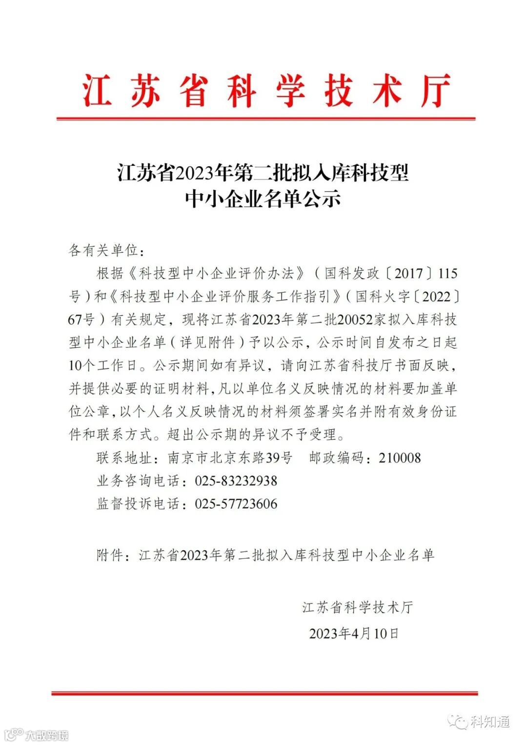 67号)有关规定,现将江苏省2023年第二批20052家拟入库科技
