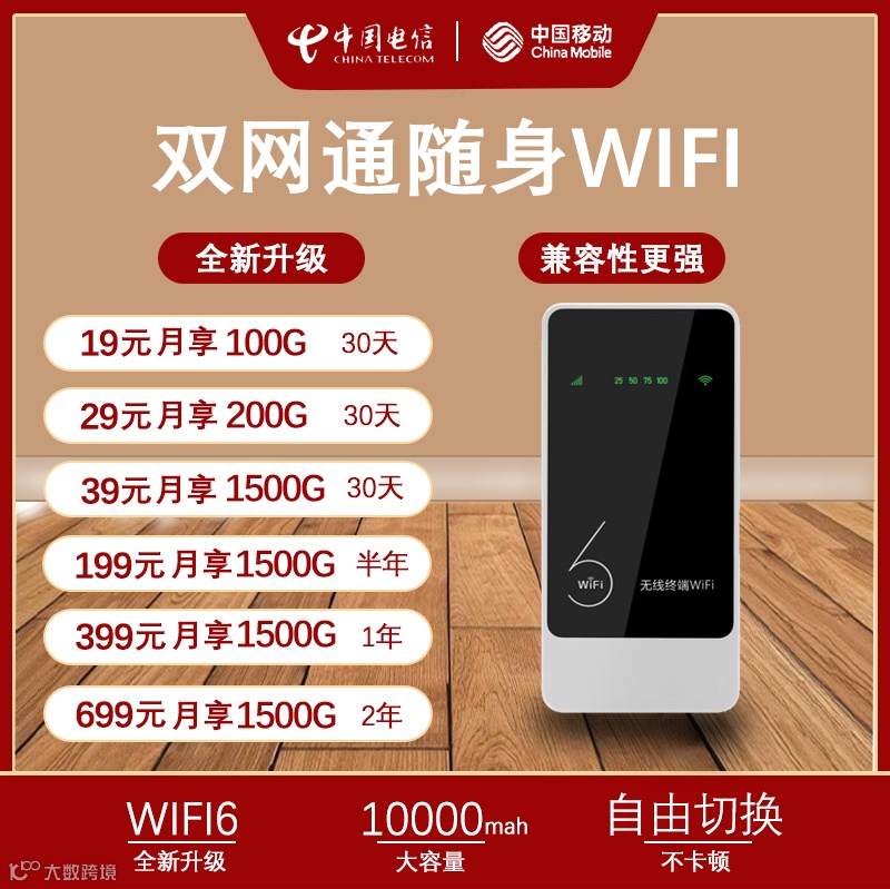 预存100元话费WiFi设备免费送,非预存用户WiFi设备售价49元,信号稳定,网速快,续航高,双网络自由切换