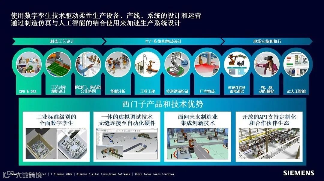 与此同时,人工智能(AI)的深度融合也进一步推动了智能制造的升级。西门子通过分享技术经验和成功案例,让与会者深入理解数字孪生技术在智能装备与机器人研发中的应用价值,探索如何利用这些先进工具提升产品质量,优化生产流程,增强市场竞争力。