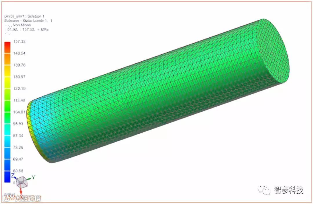 下面以根据压力负载找到杆上的应力为例,具体生成几种类型的结果显示。