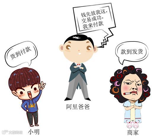 小明在网上购物准备买下一件商品,小明要求货到付款,商家要求款到发货,二人争执不下时,恰好支付宝出现了。支付宝解决了小明和商家互不信任的问题促成了交易,注意这时的支付宝在某种程度上就是“区块链”。