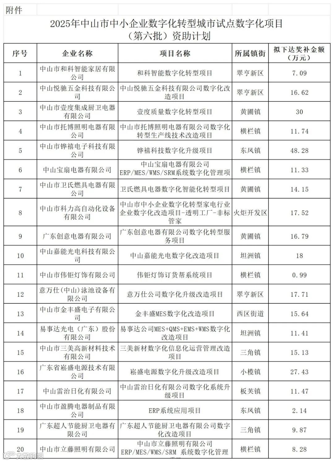 1.2025年中山市中小企业数字化转型城市试点数字化改造项目(第六批)资助计划