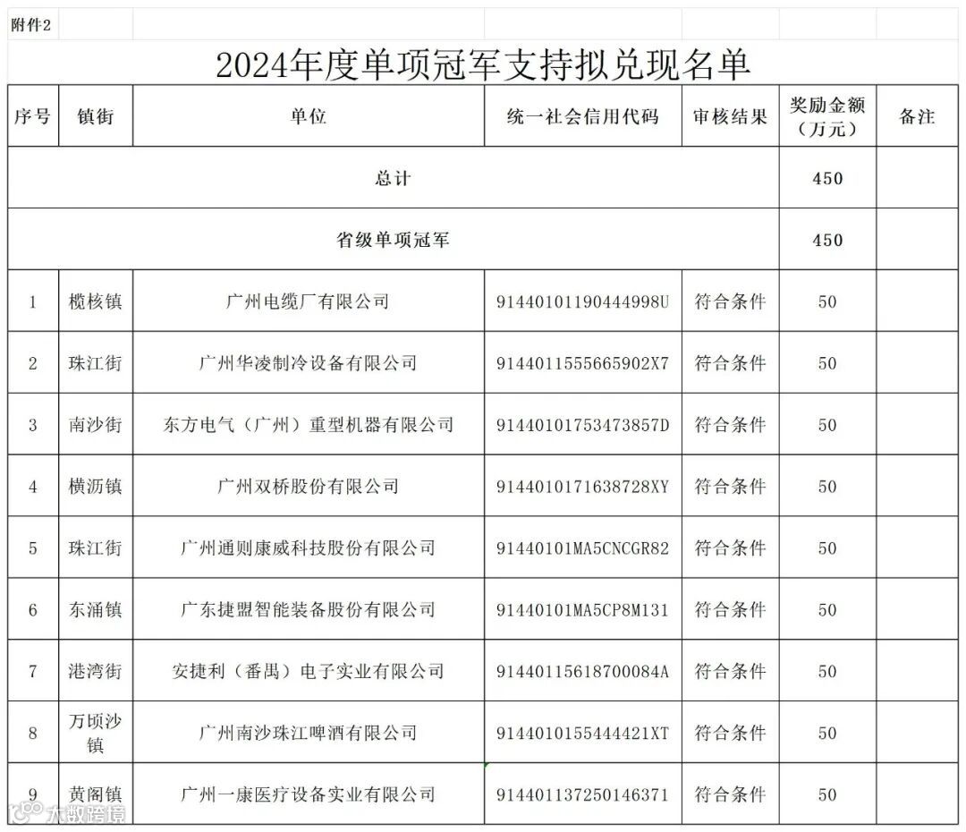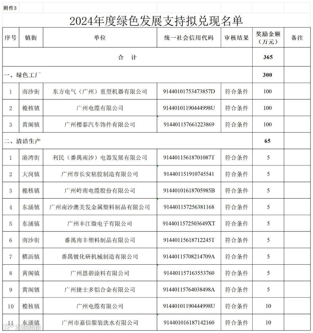 南沙新区(自贸片区)促进制造业高质量发展十条措施》有关规定,经评审小组审定,现对2024年度促进制造业高质量发展奖励(产业联动发展奖励、单项冠军支持、绿色发展支持)拟兑现名单予以公示,公示期为11月27日—12月3日(5个工作日)。