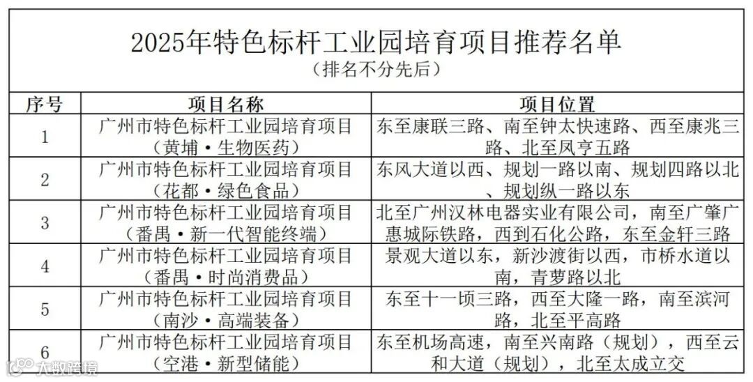 导读:广州市工业和信息化局关于2025年特色标杆工业园培育项目推荐名单的公示