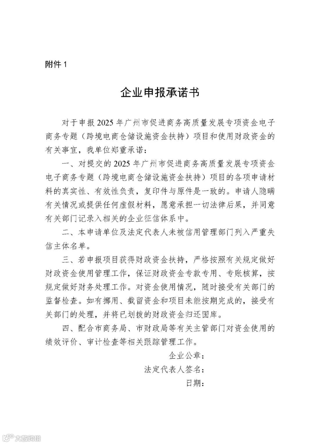 (一)依法注册登记并在广州从事跨境电商业务的企业。