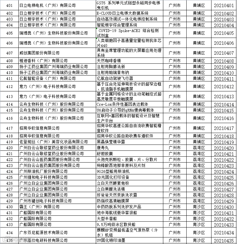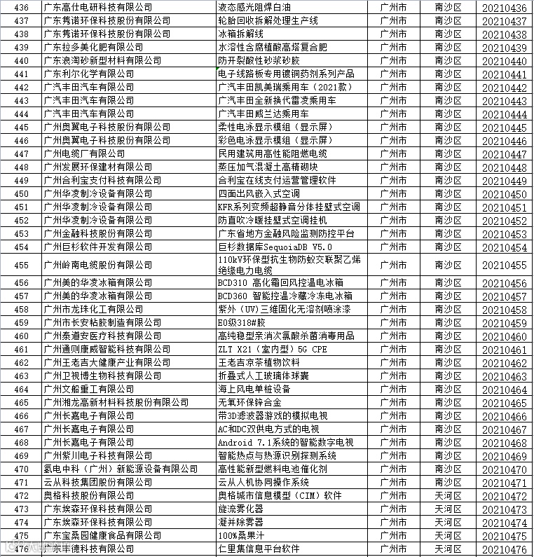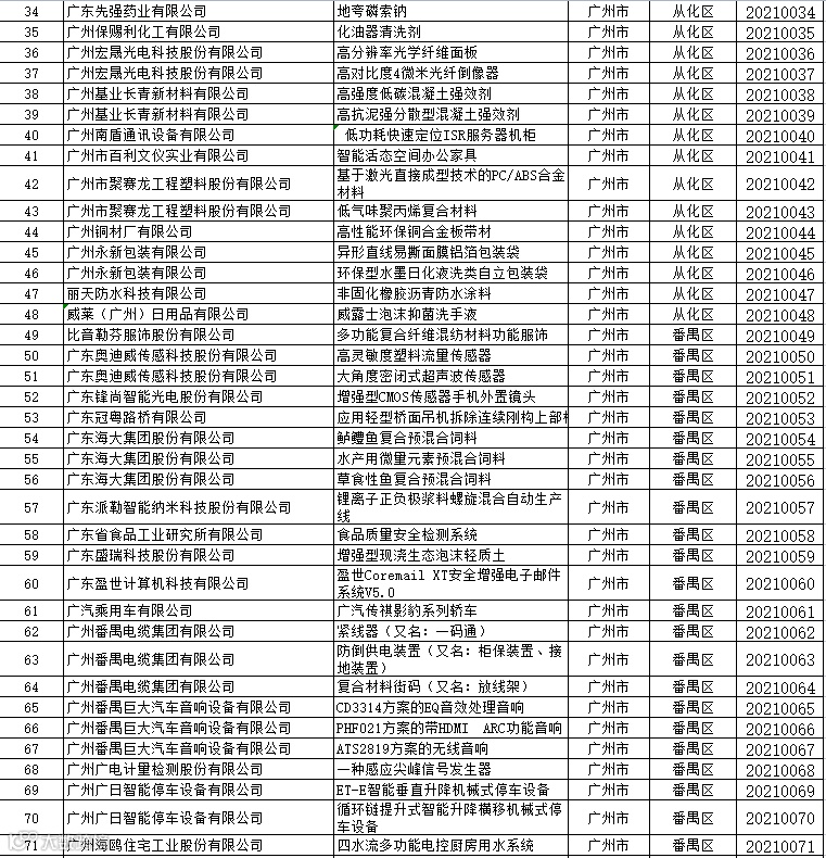 关于公布2021年广东省名优高新技术产品名单的通知