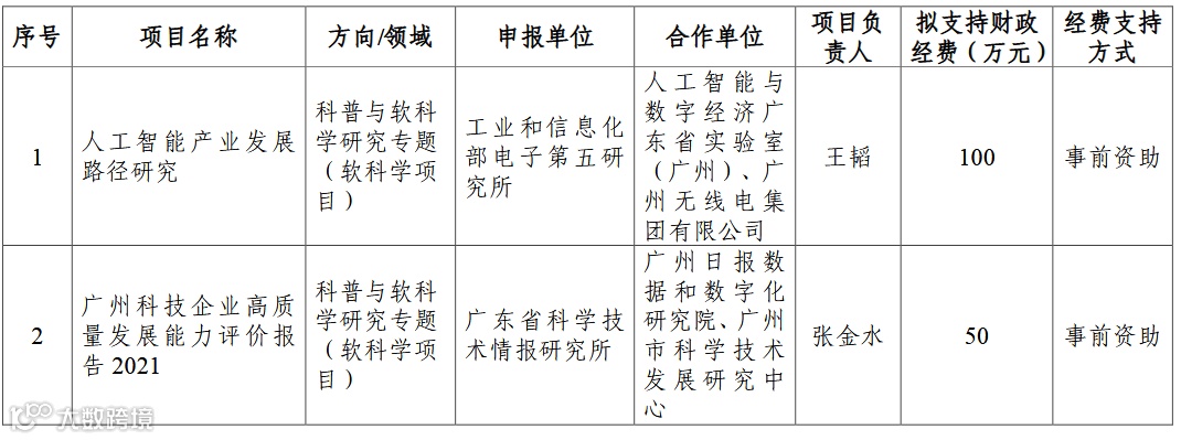 根据《广州市科技计划项目管理办法》(穗科规字〔2019〕3号)有关规定,现对2022年广州市创新环境计划科普与软科学研究专题(软科学项目)拟立项项目名单予以公示。公示时间为2021年11月22日至11月26日。