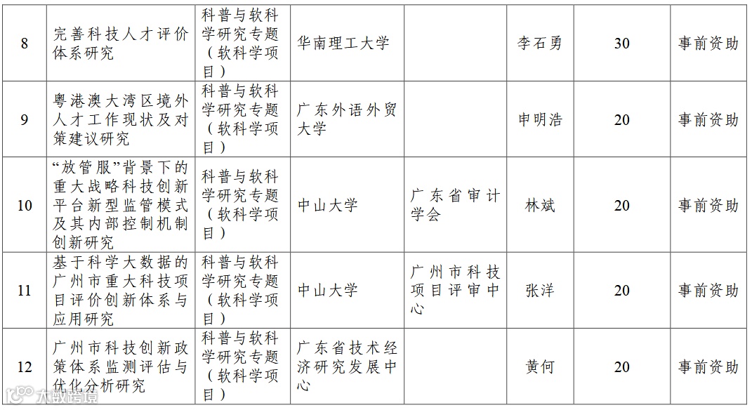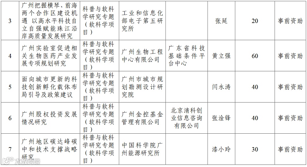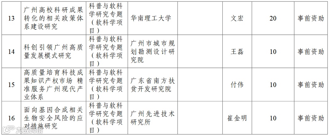 2022年广州市创新环境计划科普与软科学研究专题(软科学项目)拟立项项目名单公示