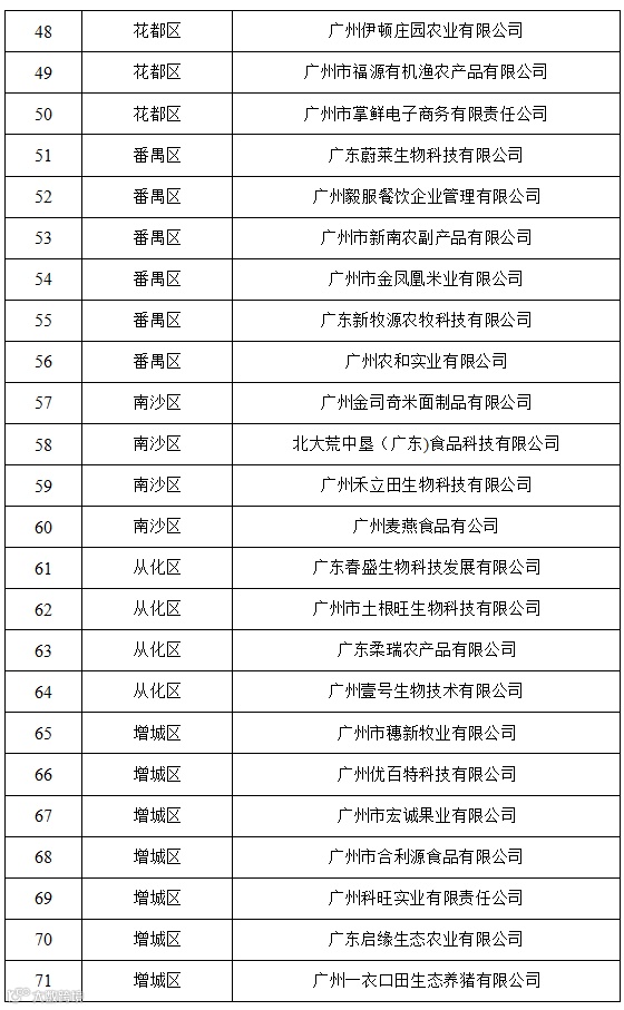 广州市关于2021年市级农业龙头企业拟认定名单的公示