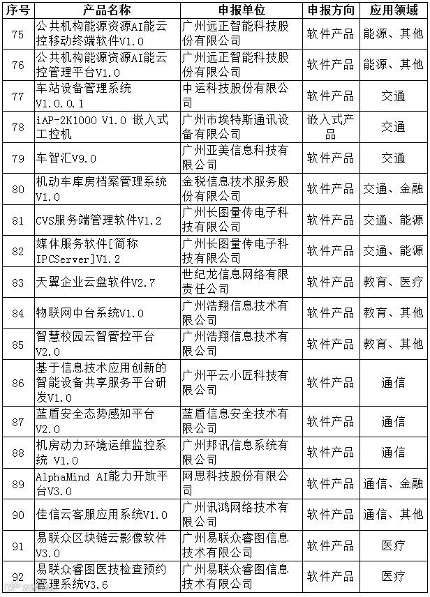 广州市工业和信息化局关于广州市信息技术应用创新产品资源池(第二批)入库名单的公示