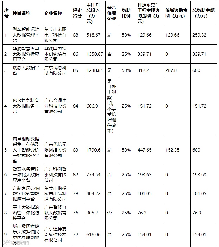市工业和信息化专项资金管理办法》(东工信〔2021〕118号)《东莞市“倍增计划”专项资金管理办法》(东工信〔2021〕174号)《2021年“倍增计划”专项资金资助目录》(东倍增办〔2021〕128号)以及《关于组织申报2021年东莞市工业和信息化专项资金信息化发展专题(大数据平台项目)的通知》(东工信函〔2021〕175号)工作要求,我局组织开展了2021年东莞市工业和信息化专项资金信息化发展专题(大数据平台项目)申报工作。经市人民政府同意,对东莞市诺丽电子科技有限公司等