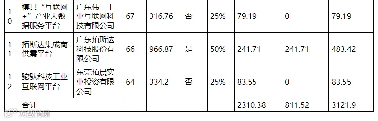 附件:2021年东莞市工业和信息化专项资金信息化发展专题(大数据平台项目)资助计划