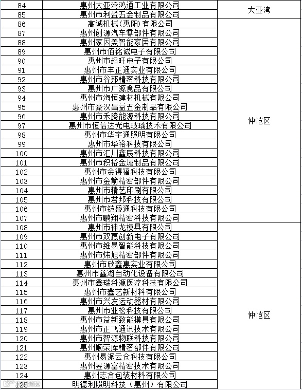 惠州市【高培入库】关于2021年市级高新技术企业培育入库名单
