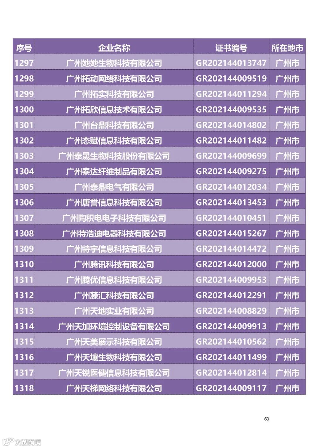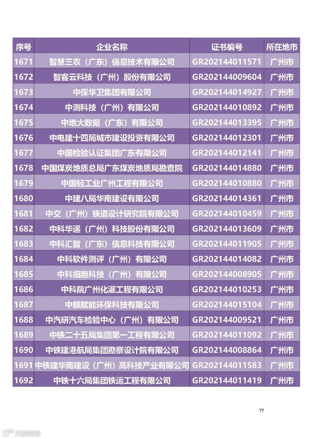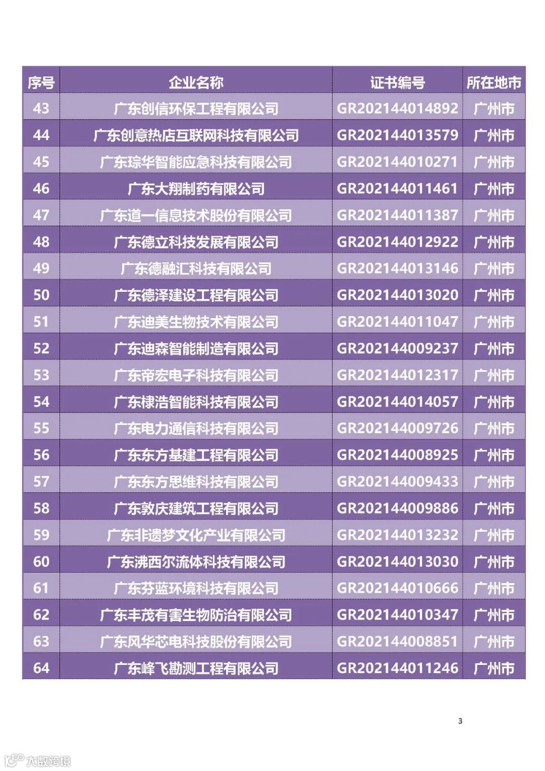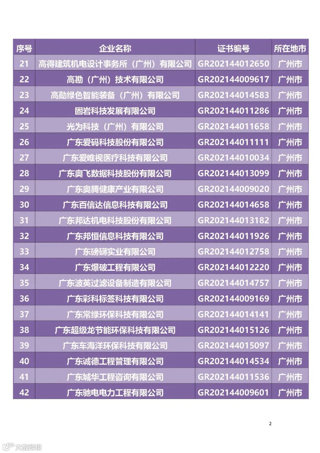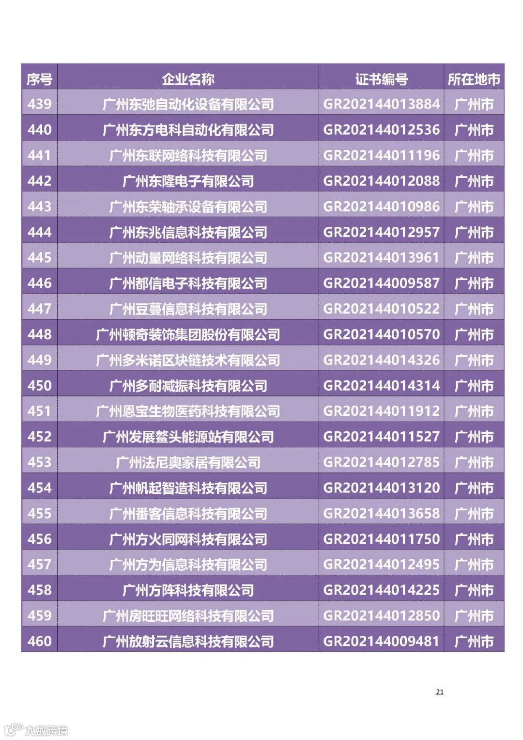 根据《科技部 财政部 国家税务总局关于修订印发〈高新技术企业认定管理办法〉的通知》(国科发火〔2016〕32号)和《科技部 财政部 国家税务总局关于修订印发〈高新技术企业认定管理工作指引〉的通知》(国科发火〔2016〕195号)的有关规定,经企业申报,广东省高新技术企业认定管理工作领导小组办公室组织认定,并报全国高新技术企业认定管理工作领导小组办公室备案入库,暗物智能科技(广州)有限公司等6512家企业被认定为2021年高新技术企业(名单见附件1)。请各有关单位做好高新技术企业证书发放工作,领取证书联系电话详见附件2。