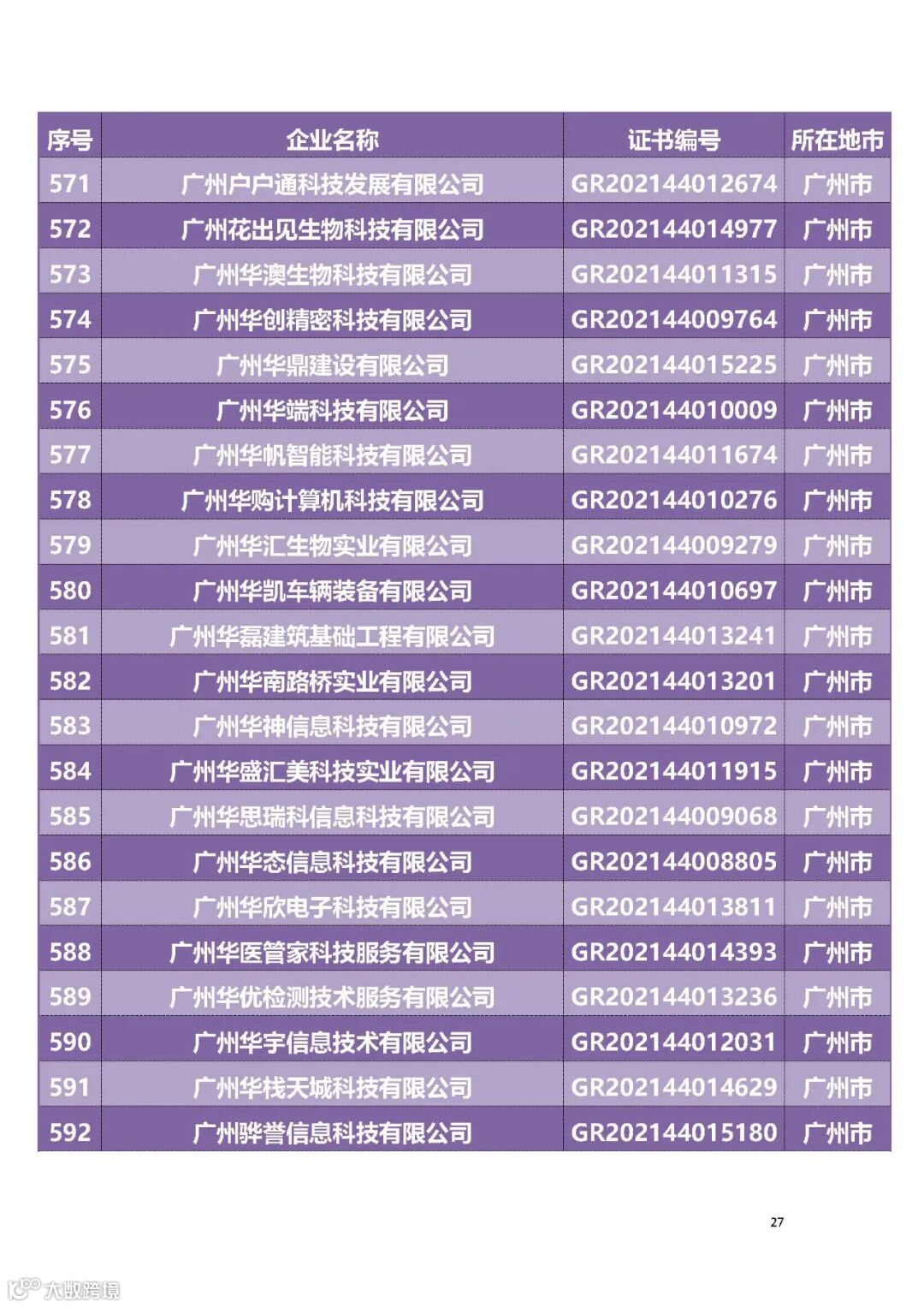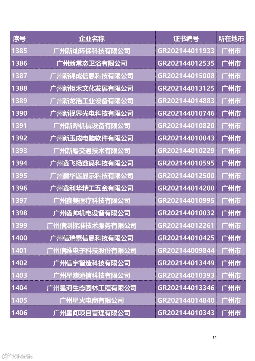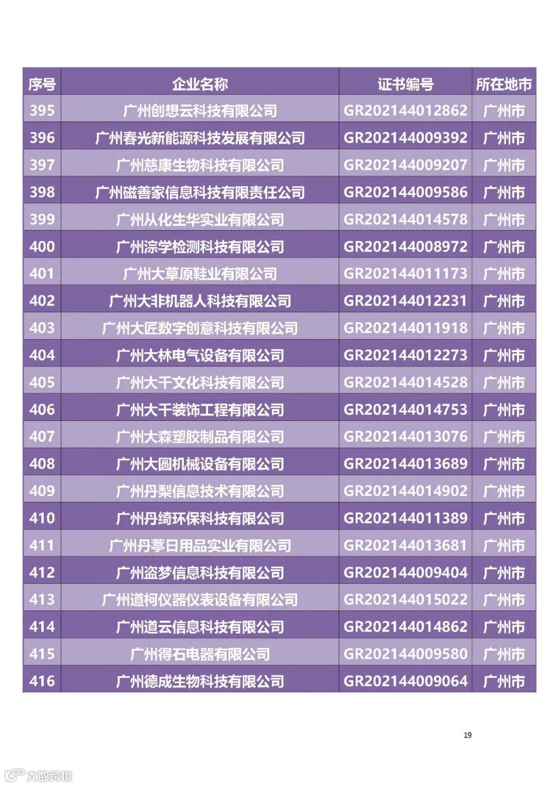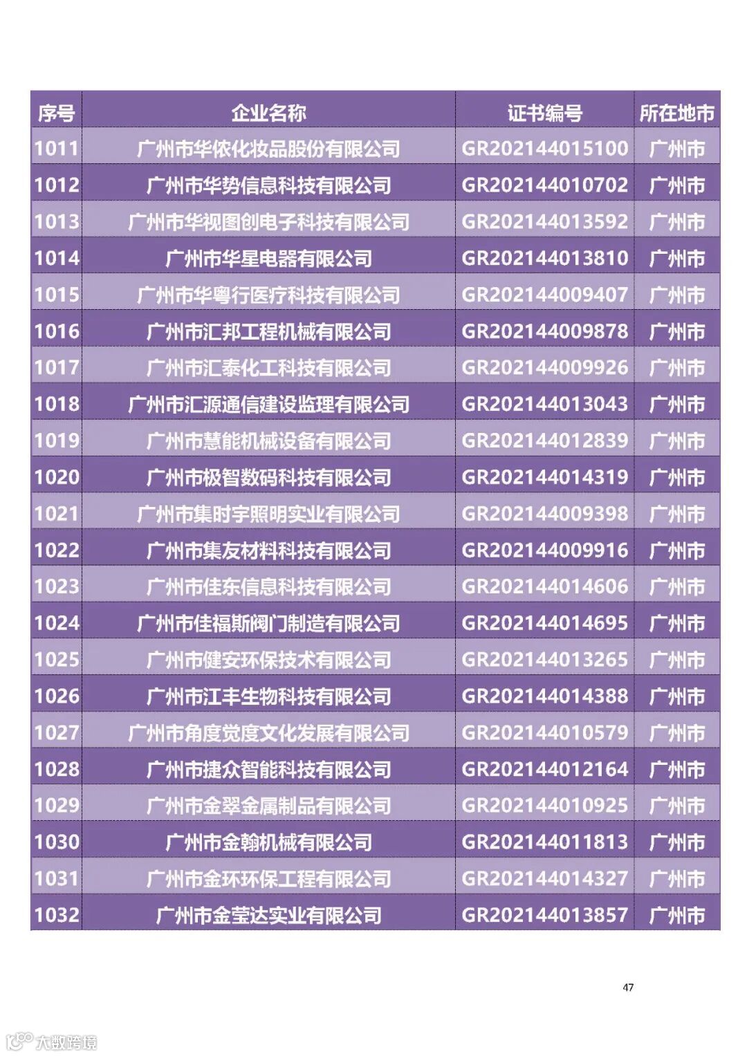根据《科技部 财政部 国家税务总局关于修订印发〈高新技术企业认定管理办法〉的通知》(国科发火〔2016〕32号)和《科技部 财政部 国家税务总局关于修订印发〈高新技术企业认定管理工作指引〉的通知》(国科发火〔2016〕195号)的有关规定,经企业申报,广东省高新技术企业认定管理工作领导小组办公室组织认定,并报全国高新技术企业认定管理工作领导小组办公室备案入库,暗物智能科技(广州)有限公司等6512家企业被认定为2021年高新技术企业(名单见附件1)。请各有关单位做好高新技术企业证书发放工作,领取证书联系电话详见附件2。