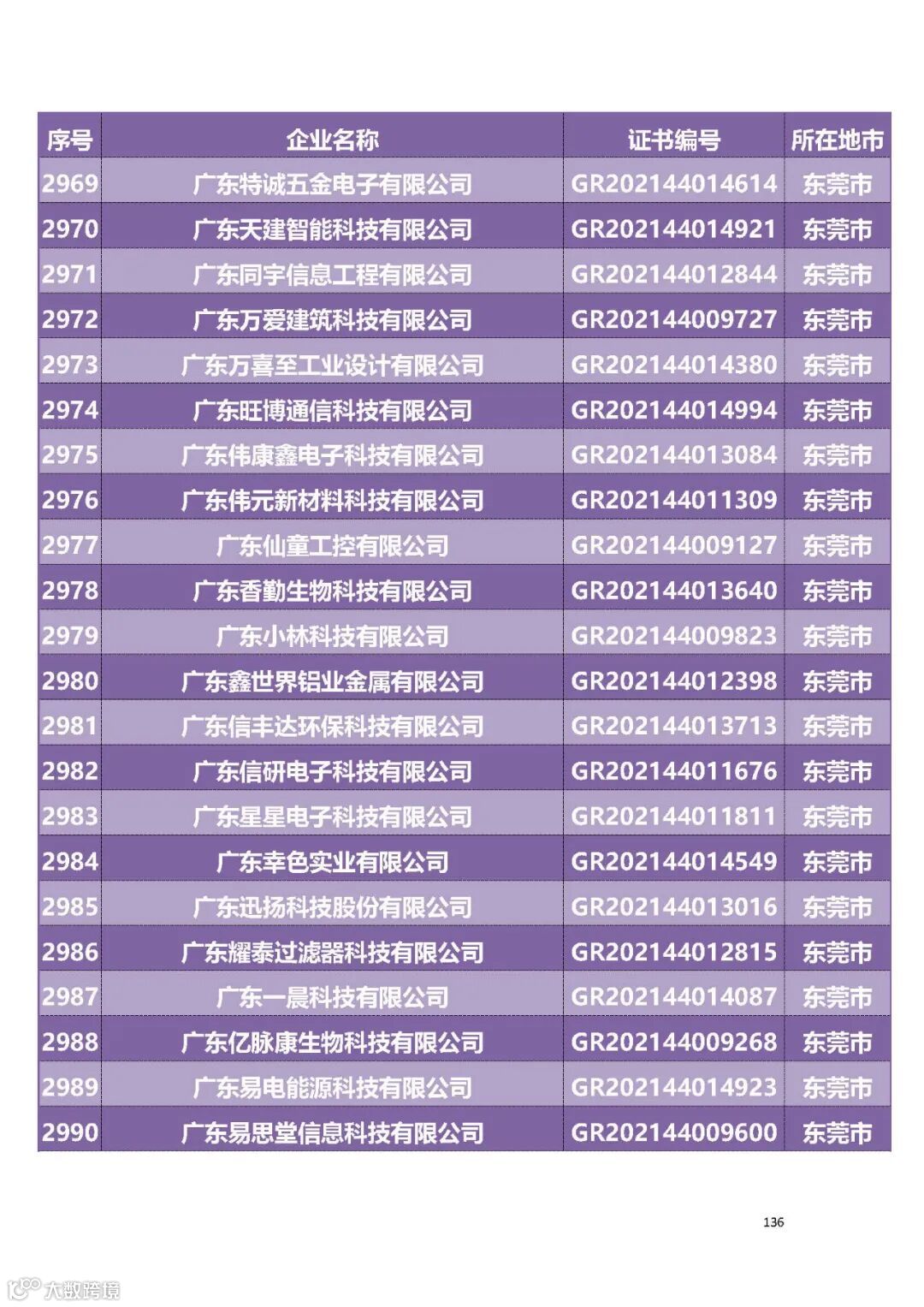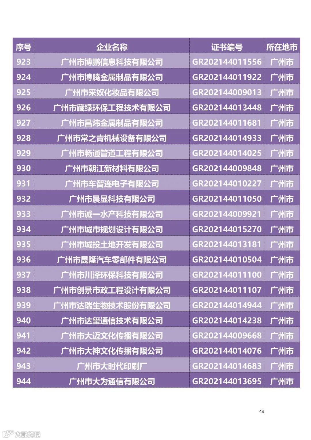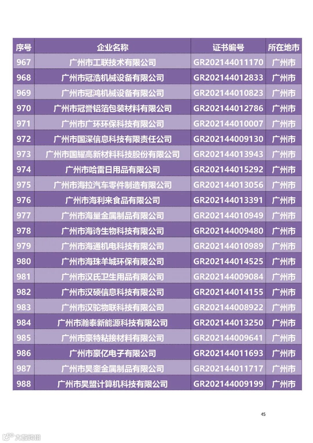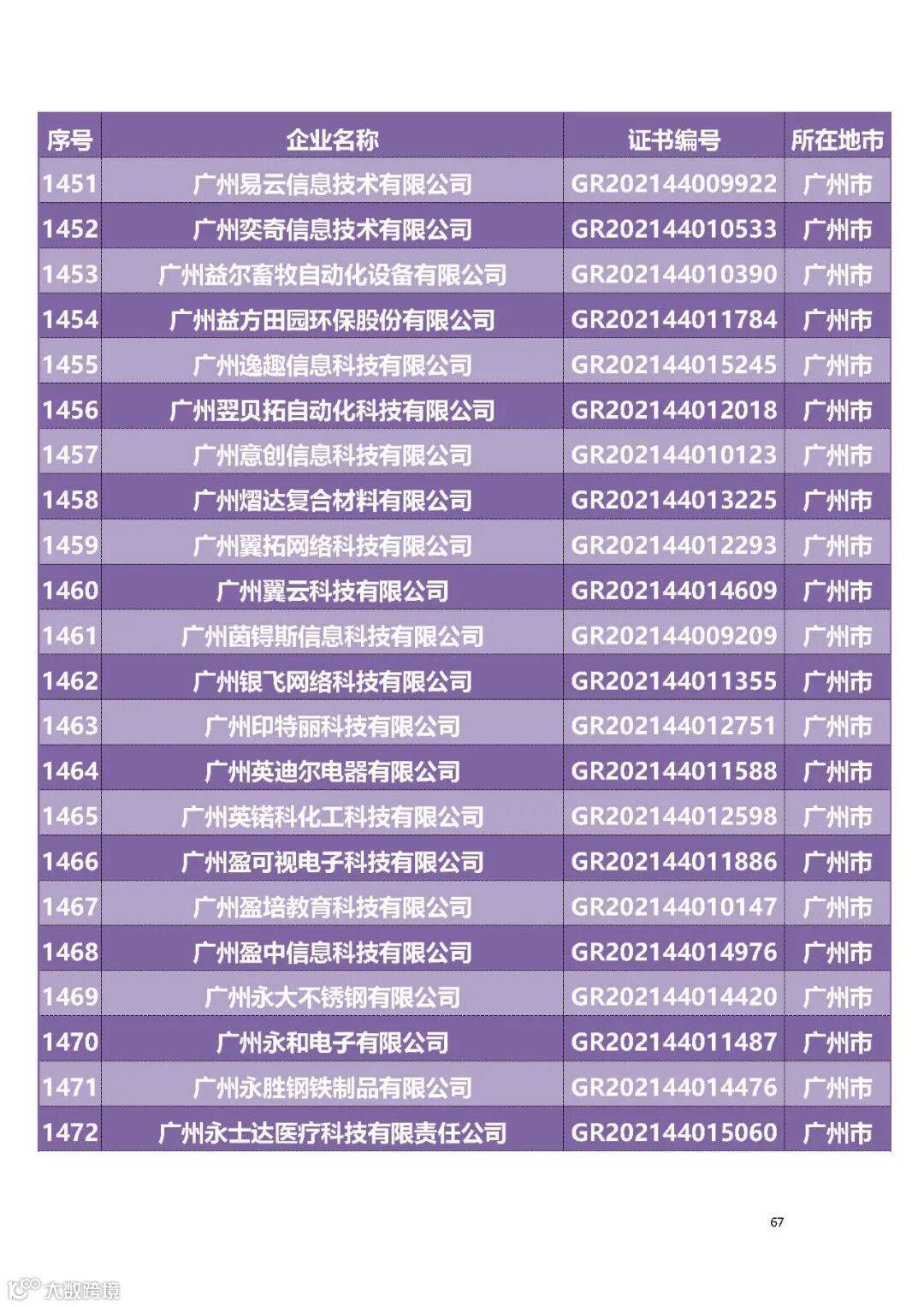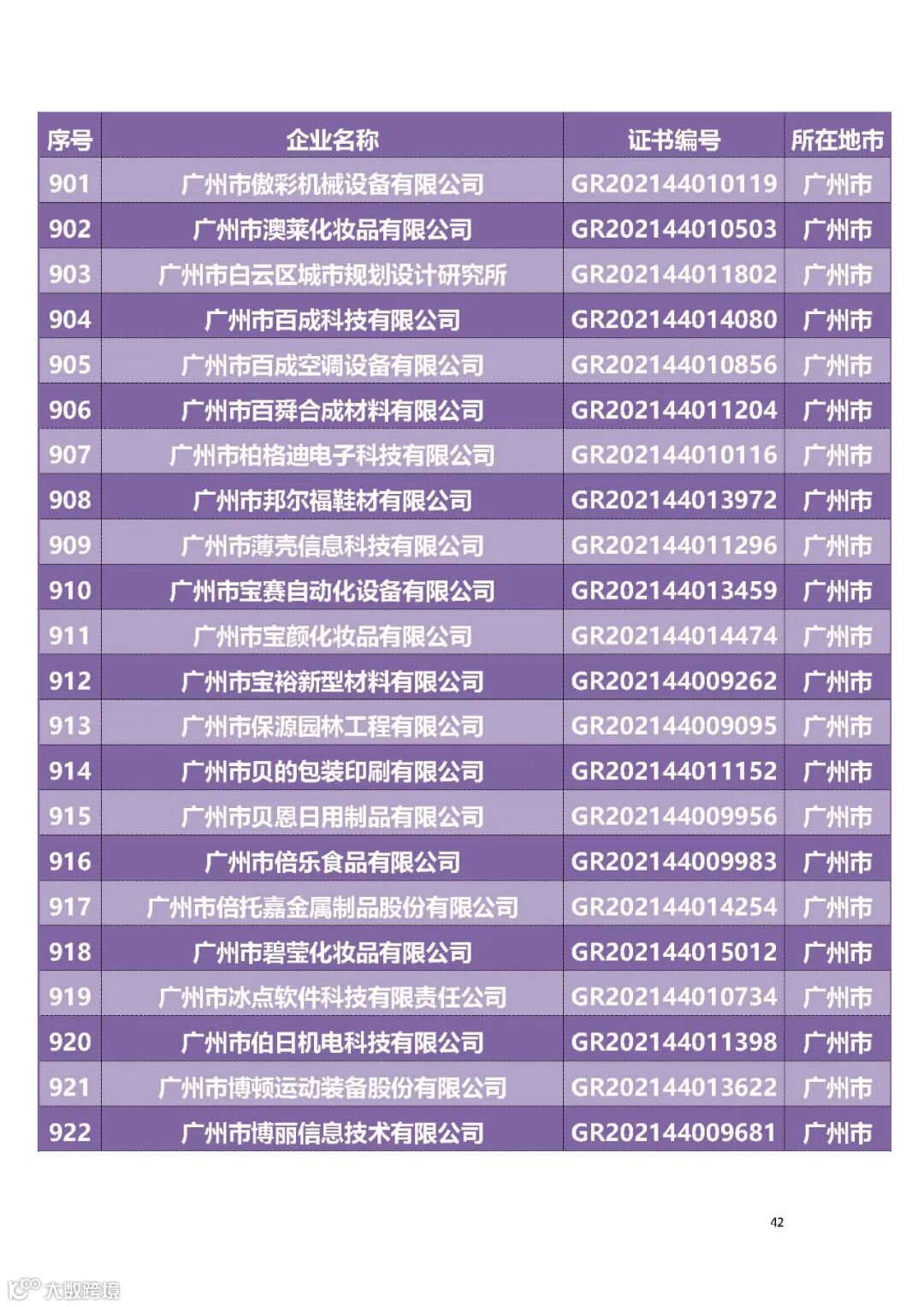 根据《科技部 财政部 国家税务总局关于修订印发〈高新技术企业认定管理办法〉的通知》(国科发火〔2016〕32号)和《科技部 财政部 国家税务总局关于修订印发〈高新技术企业认定管理工作指引〉的通知》(国科发火〔2016〕195号)的有关规定,经企业申报,广东省高新技术企业认定管理工作领导小组办公室组织认定,并报全国高新技术企业认定管理工作领导小组办公室备案入库,暗物智能科技(广州)有限公司等6512家企业被认定为2021年高新技术企业(名单见附件1)。请各有关单位做好高新技术企业证书发放工作,领取证书联系电话详见附件2。