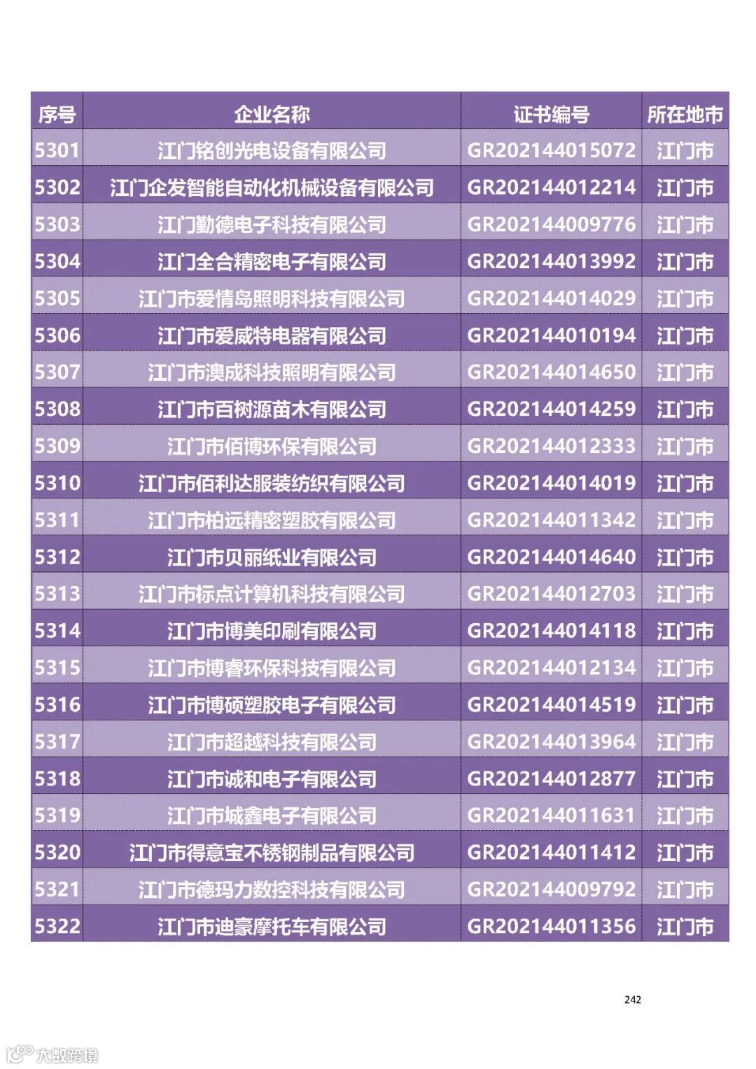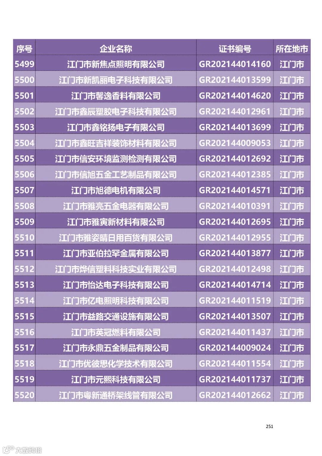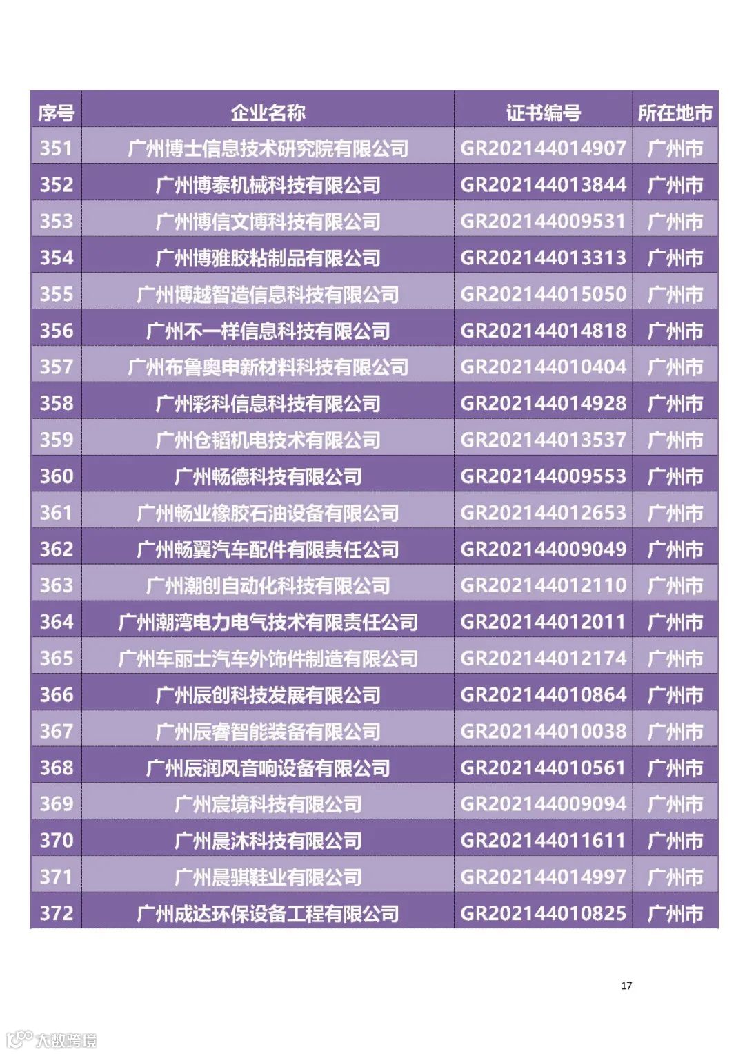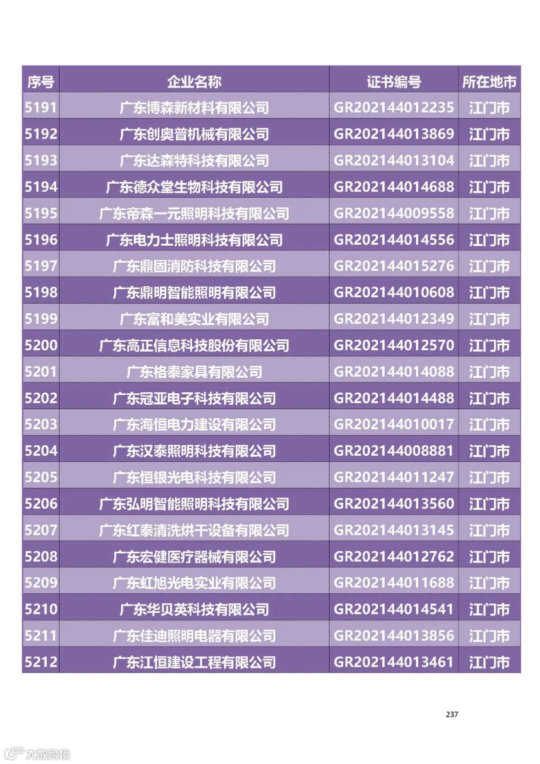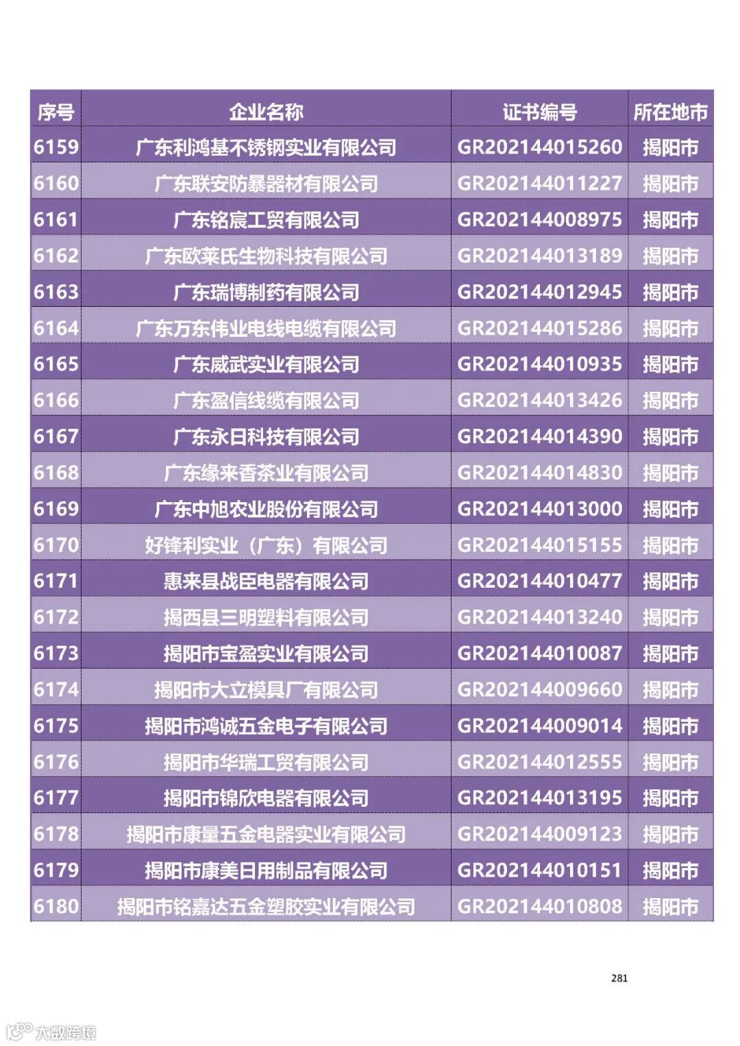 根据《科技部 财政部 国家税务总局关于修订印发〈高新技术企业认定管理办法〉的通知》(国科发火〔2016〕32号)和《科技部 财政部 国家税务总局关于修订印发〈高新技术企业认定管理工作指引〉的通知》(国科发火〔2016〕195号)的有关规定,经企业申报,广东省高新技术企业认定管理工作领导小组办公室组织认定,并报全国高新技术企业认定管理工作领导小组办公室备案入库,暗物智能科技(广州)有限公司等6512家企业被认定为2021年高新技术企业(名单见附件1)。请各有关单位做好高新技术企业证书发放工作,领取证书联系电话详见附件2。