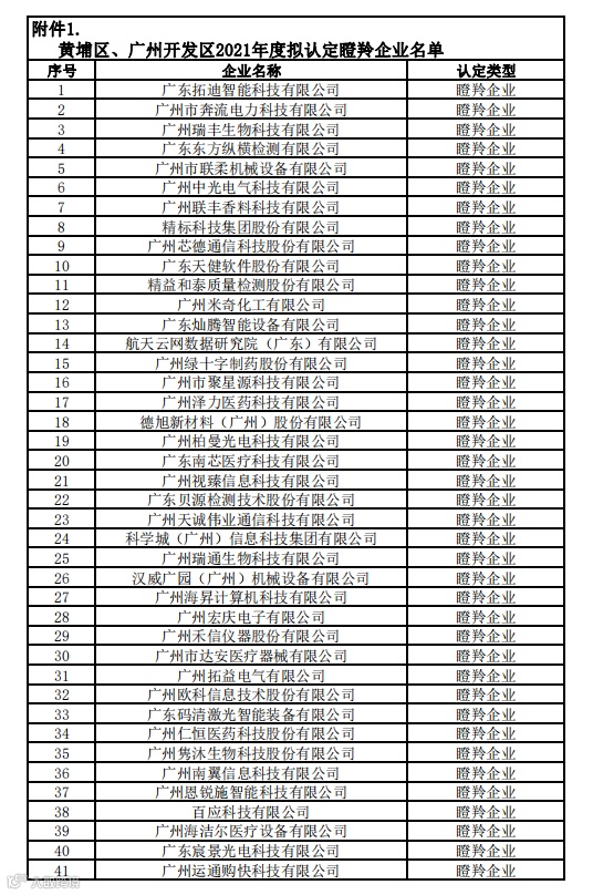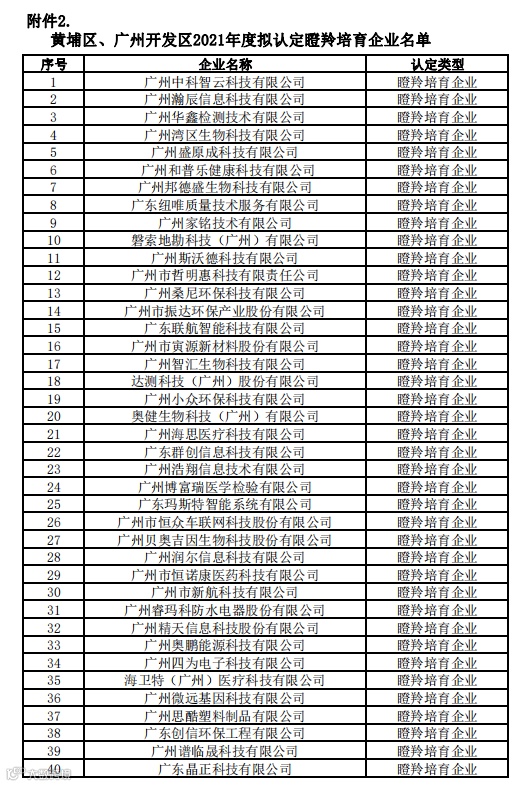 导读:【瞪羚结果】广州开发区2021年度瞪羚企业认定申报审核结果