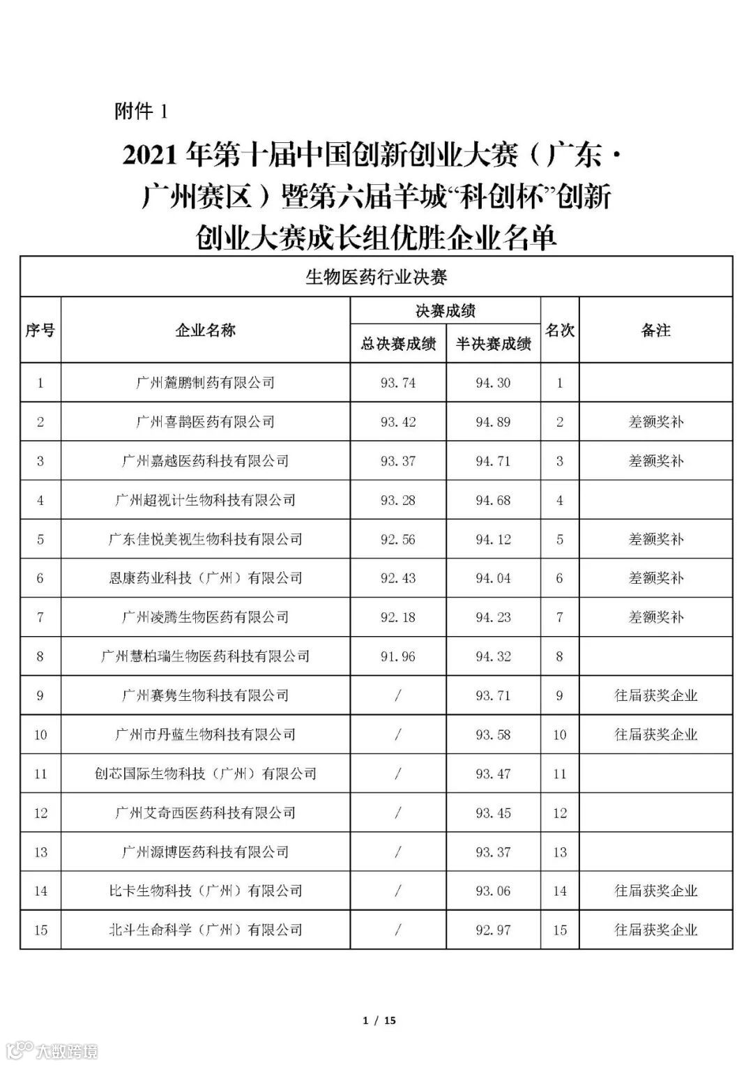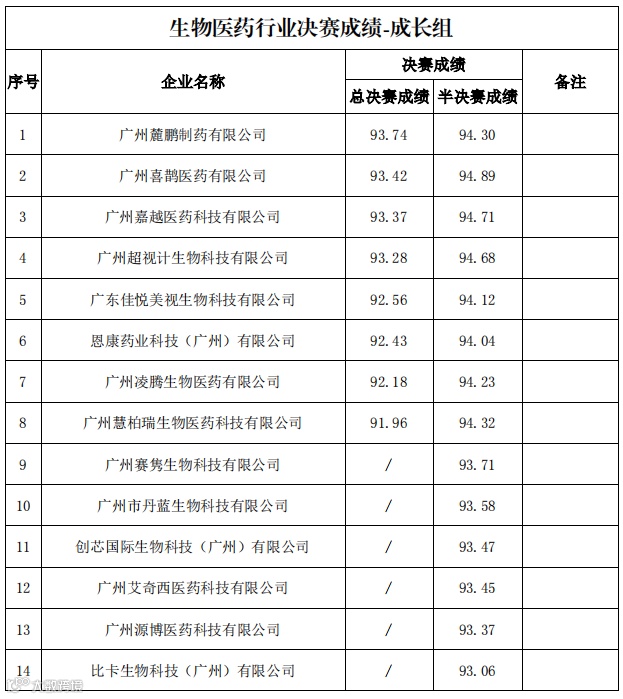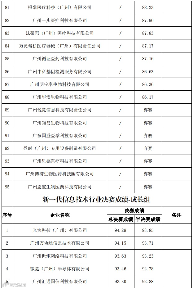 根据《广州市科学技术局关于举办第十届中国创新创业大赛(广东·广州赛区)暨第六届羊城“科创杯”创新创业大赛的通知》规定,现将广州赛区优胜企业名单予以公开(见附件)。