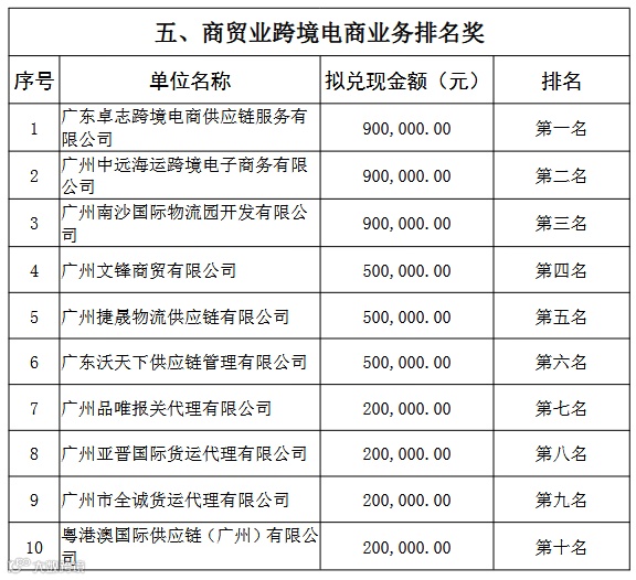 广州市南沙区关于2021年度(对2020年的奖励)航运物流业和商贸业(跨境电商)企业奖励拟兑现名单(第二批)公示的通知