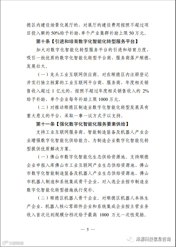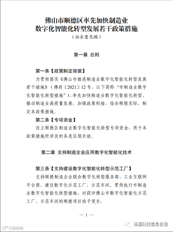 佛山市顺德区率先加快制造业数字化智能化转型发展若干政策措施(征求意见稿)