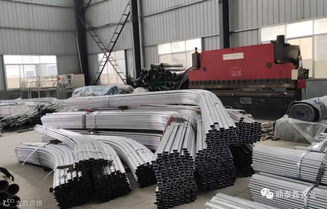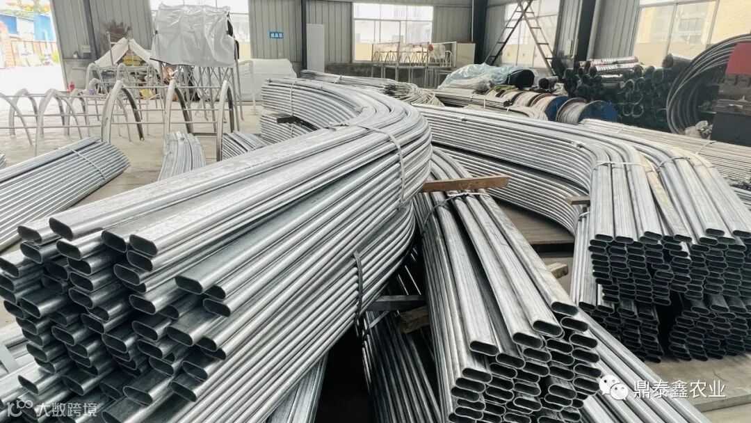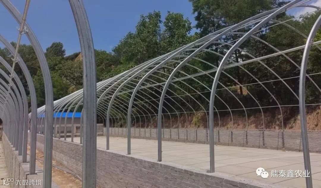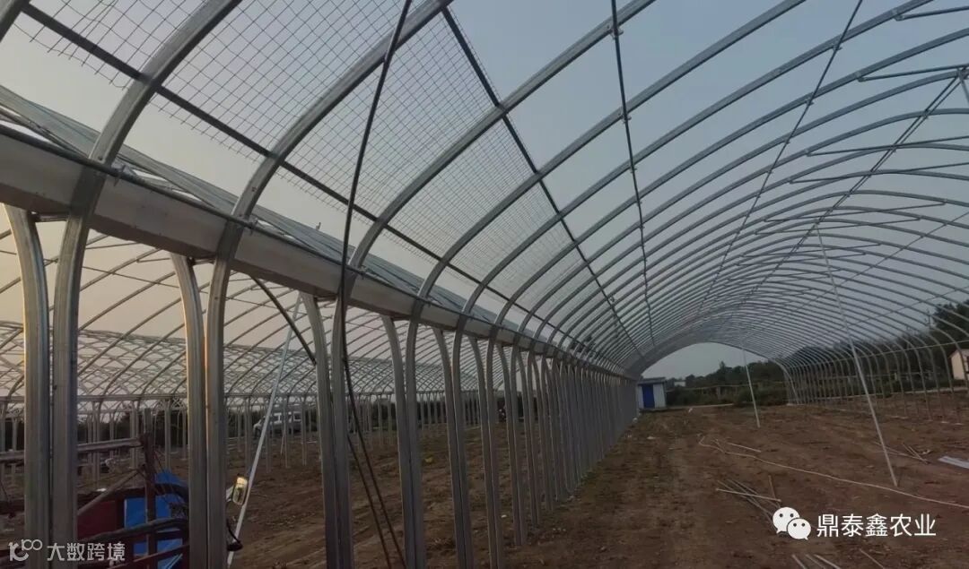 鼎泰鑫大棚骨架外形美观,无划痕,全程无焊接,承重能力高,大棚骨架应用效果好,蔬菜大棚各类型棚的采光面皆设计成弧形,提高了透光面角度,因为采光面为弧面,不积灰尘,透光率好,导热系数低,不伤害棚膜。