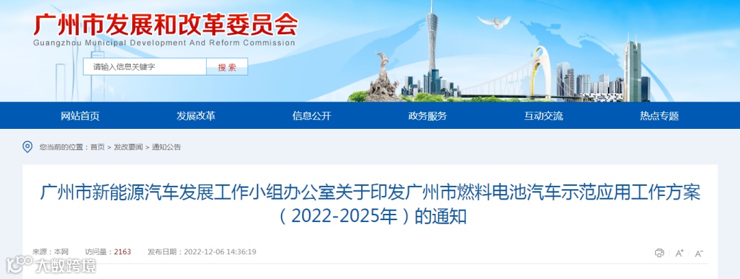 12月6日,广州市印发广州市燃料电池汽车示范应用工作方案(2022-2025年)的通知。重点内容有: