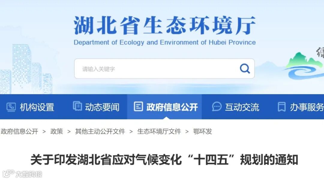 近日,湖北省生态环境厅印发《湖北省应对气候变化“十四五”规划》,其中提到: