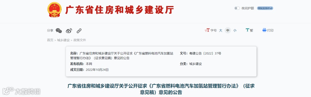 10月25日,广东省住建厅发布了《广东省燃料电池汽车加氢站管理暂行办法》(征求意见稿)。