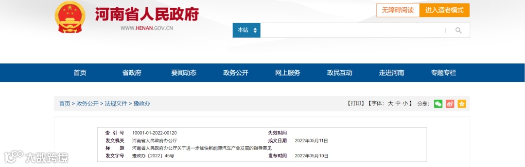 5月19日,河南省人民政府印发了《进一步加快新能源汽车产业发展的指导意见》(以下简称“《意见》”)。
