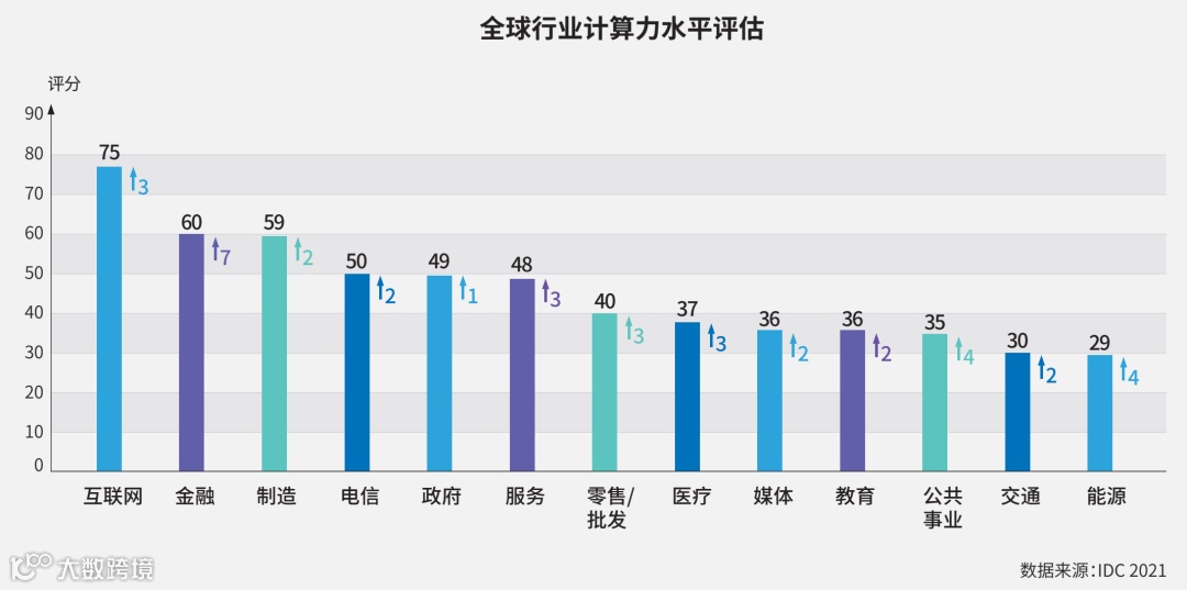 计算力指数国家排名,美国第一,中国第二。过去一年,大部分国家计算力评分均有所提升,中国计算力水平增幅最大达到 13.5%,且大部分指标延续了高速增长。