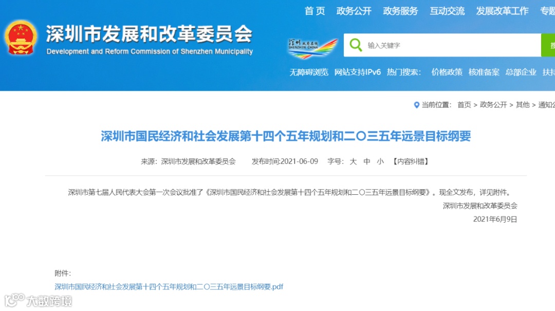 6月9日,深圳市发展和改革委员会网站发布,深圳市第七届人民代表大会第一次会议批准了《深圳市国民经济和社会发展第十四个五年规划和二〇三五年远景目标纲要》(下称“纲要”)。