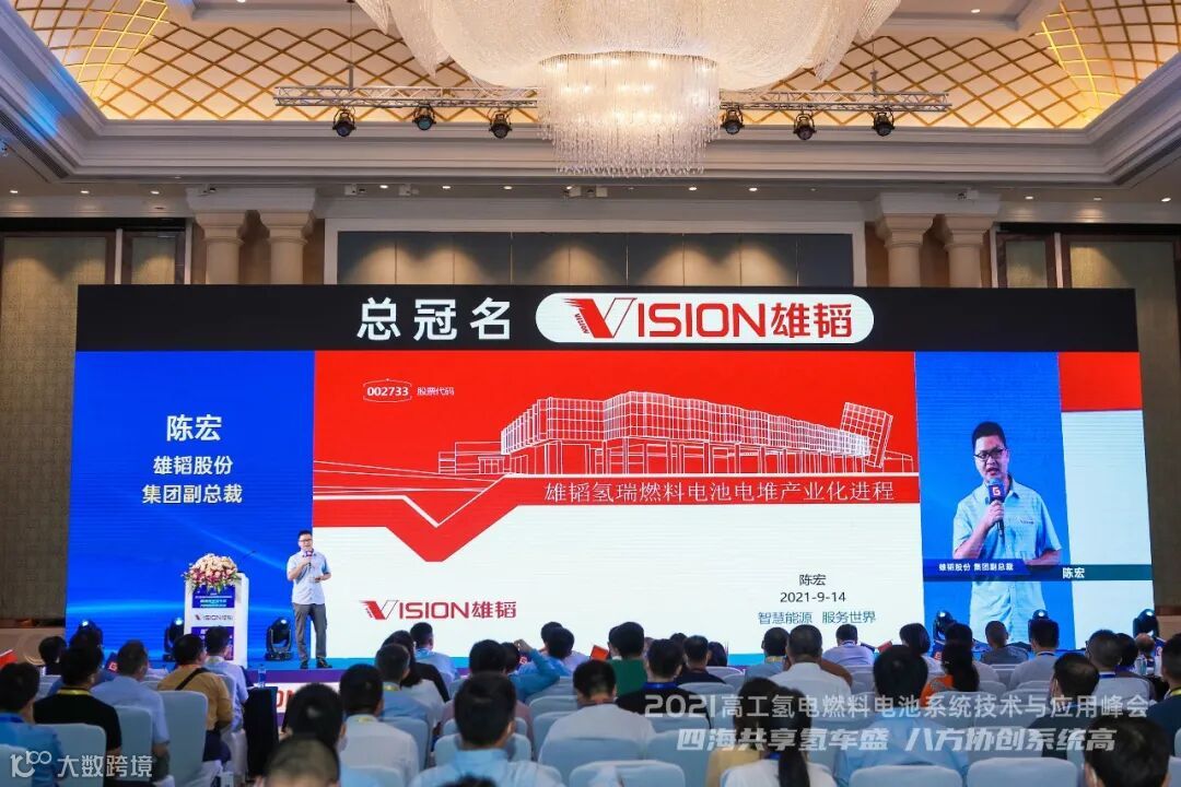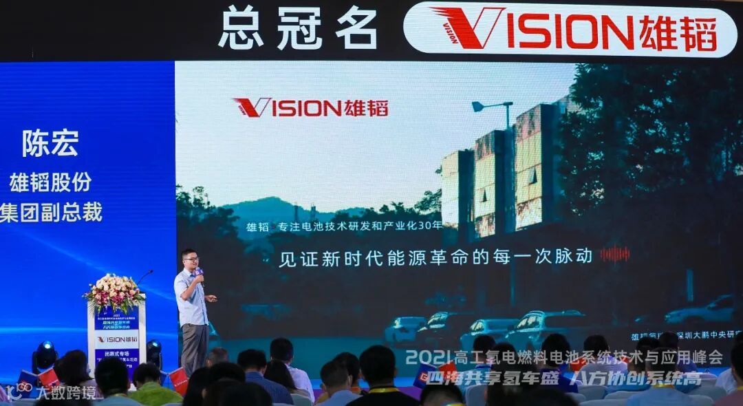9月14日,峰会中,雄韬股份集团副总裁陈宏在会议期间发表了"雄韬氢瑞燃料电池电堆产业化进程”的主题演讲。