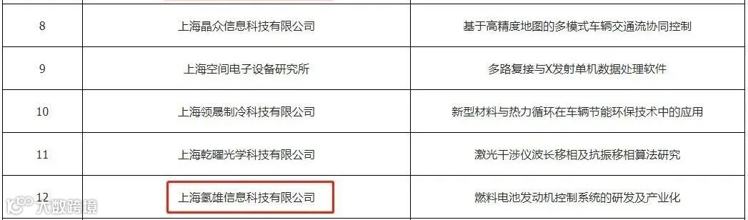【行业】上海氢雄上榜,上海嘉定产学研扶持项目公示