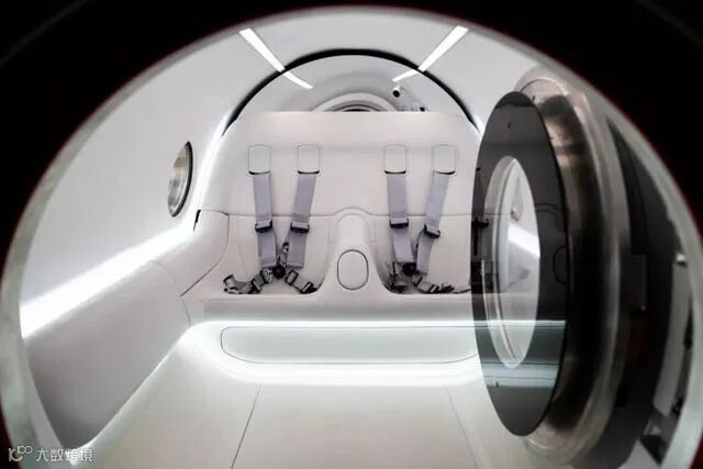 车舱内部的设计为白色的配色,是为了让乘客拥有熟悉感,毕竟他们要花时间适应下以商用飞机速度驾驶的真空密封管。